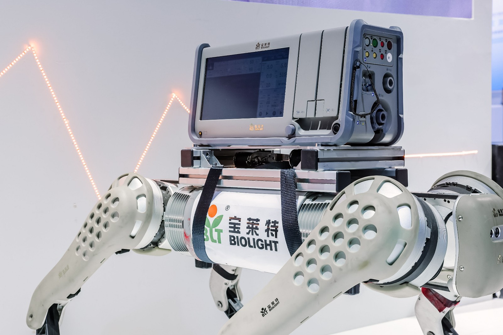一竞技官网首日表现印证了这一趋势:四足机器人急救解决方案作为全场焦点,搭载转运监护仪、心电图机等核心设备,以展现了“设备随行、救治前置”的急救新范式。