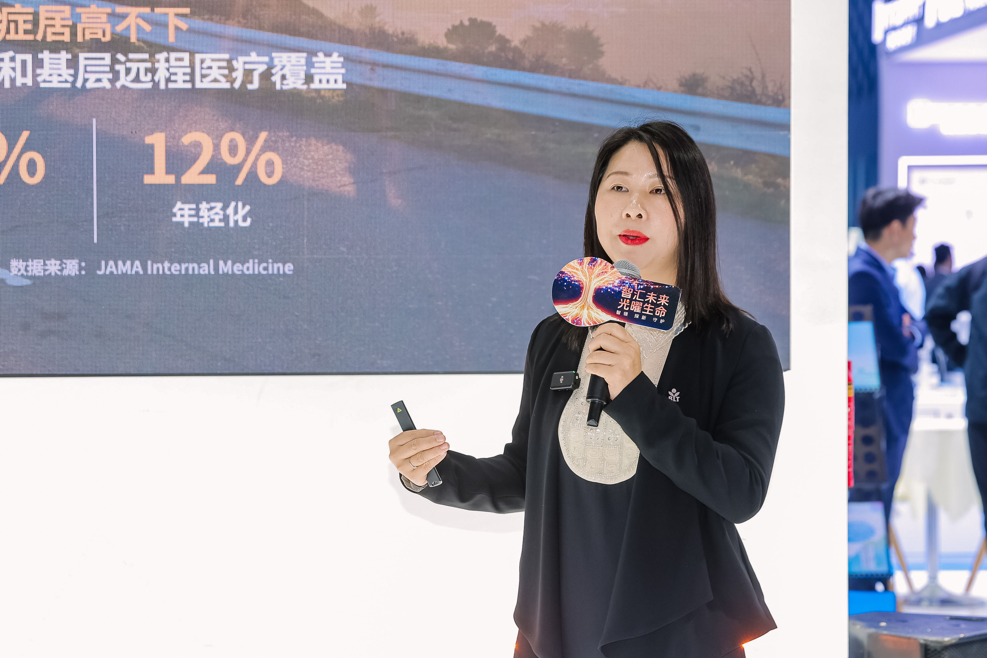 首席医学专家Dr. Saqib以体液失衡的影响作为开场,揭秘AI算法驱动的创新体液监测技术,观众席频频举起手机记录前沿观点。