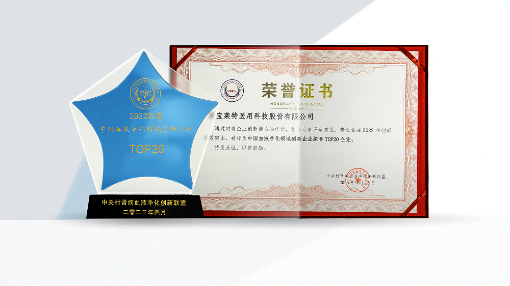 一竞技官网作为行业影响力企业应邀参加本次庆典,凭借卓越品牌影响力、技术创新实力,被评为“中国血液净化领域创新企业综合TOP20 企业”。