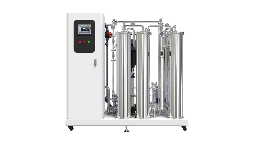 结构及组成:由原水增压泵,罐式过滤器,滤芯式过滤器,软化器,碳吸附罐,反渗透装置,后输送管路组成,选配热消毒装置。